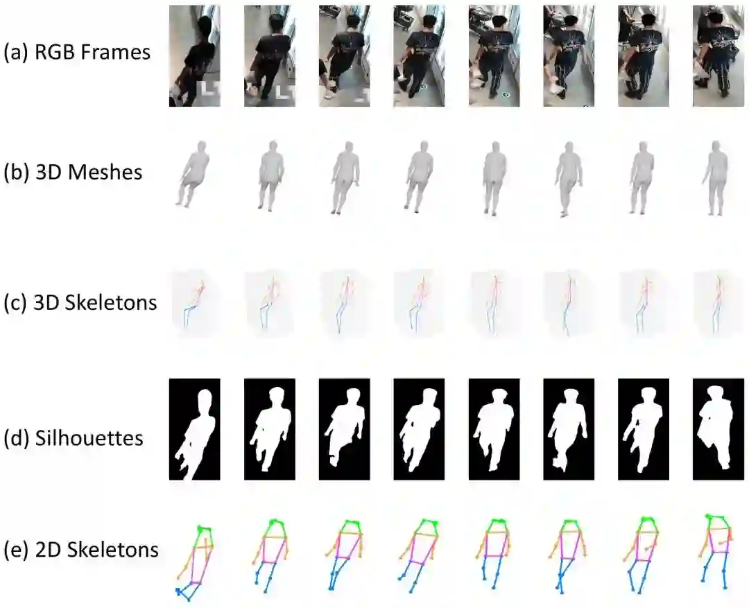 现有步态识别研究主要关注于人体轮廓序列或关键点序列等二维特征表达。然而,人们生活(行走)在三维空间中,将三维人体投影到二维平面会丢失许多步态识别所需的视角、体型和步态的动态信息等关键信息。因此,本研究旨在探索真实场景下基于密集三维表征的步态识别,这一具有实际应用价值却被忽视的问题。我们提出一个探索3D人体骨骼蒙皮模型(3D Skinned Multi-Person Linear(SMPL) model)在步态识别上可行性的新框架,称为SMPLGait。SMPLGait通过两个精心设计的分支,分别从人体轮廓中提取外观特征,及从3D SMPL中学习三维视角和体型的先验知识。此外,由于缺乏合适的数据集,我们构建了第一个基于三维表示的自然场景大规模步态识别数据集,名为Gait3D。它包含4000个行人对象和超过25000个步态序列。Gait3D采集自一个无约束的真实室内场景中的39个摄像头,提供了从视频帧中恢复的3D SMPL数据,可支持密集人体体型、三维视角和步态动态信息的三维建模。此外,它还提供了二维人体轮廓和人体关键点数据,可帮助研究者们探索多模态步态识别。基于Gait3D,我们全面比较分析了本文提出的SMPLGait方法和现有步态识别方法,实验结果不仅证明我们的方法具有更好的步态识别准确性,也显示出三维特征表示在真实场景的步态识别问题中的巨大潜力。