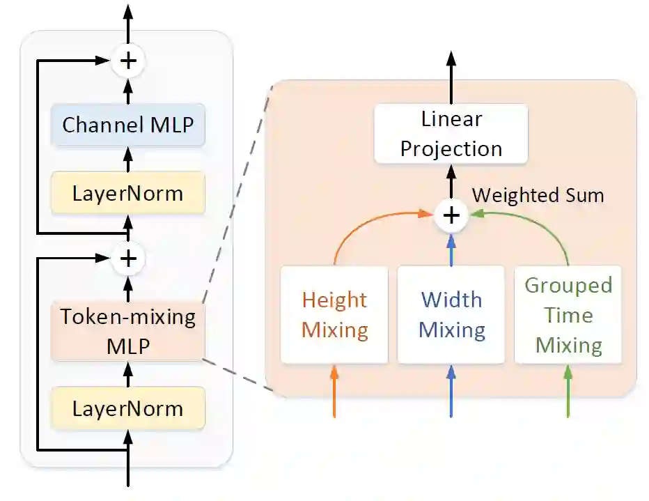MLP-3D: A MLP-like 3D Architecture with Grouped Time Mixing