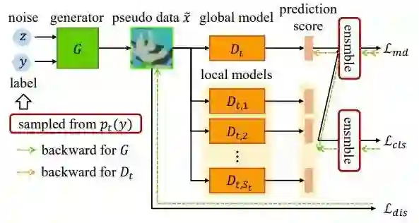 联邦学习是一种面向隐私保护的分布式学习范式。数据异构是联邦学习的主要挑战之一,它会导致联邦模型收敛速度变慢,性能下降。大多数现有方法仅通过限制客户端中的本地模型更新来解决数据异构性挑战,忽略了在服务器端进行模型聚合导致的性能下降。在本文中,我们提出了一种无数据知识蒸馏方法(FedFTG)来微调服务端上的全局模型,从而缓解直接进行模型聚合产生的性能下降问题。具体地,FedFTG训练一个生成器来拟合局部模型的输入空间,并用它来将局部模型的知识迁移到全局模型。此外,我们提出了一种难样本挖掘方案,从而在整个训练过程中进行持续高效的知识蒸馏。更进一步,我们为每个客户端设计个性化的标签采样和知识蒸馏机制,从而隐含地减轻了客户之间的分布差异带来的影响,并最大限度地利用局部模型知识。大量实验表明,我们的FedFTG方法优于现有的联邦学习方法,并且可以作为一个全局模型增强模块提升FedAvg、FedProx、FedDyn和SCAFFOLD方法的性能。
