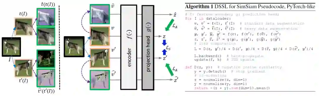 尽管各类强数据增广策略被广泛应用于提升有监督特征学习任务的性能,但是只有少数经过筛选的轻增广策略有助于自监督图像特征表示学习。本研究旨提出了一种可以适配各类强数据增强策略的有向自监督学习范式(DSSL)。我们在弱数据增广策略的视图(SV)基础上引入强增广策略,生成与原始图片的差异程度较SV更大的视图(HV)。传统的自监督学习方法最大化同一图片派生出的所有视图对之间的相似度,而DSSL将同一图片派生出的视图定义为偏序集合(SV-SV, SV←HV) ,按照视图之间的偏序关系构造非对称损失函数来优化模型训练。DSSL可以通过几行代码轻松实现,并且对于目前流行的自监督学习框架高度灵活,包括SimCLR、Sim-Siam、BYOL、MoCo V2和Barlow Twins。在 CIFAR 和 ImageNet上的大量实验结果表明,DSSL可以稳定地提升各类有监督学习框架的性能,并兼容更广泛的数据增广策略。