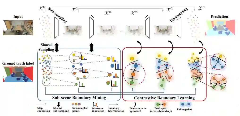 点云分割是理解3D环境的基础。然而,目前的三维点云分割方法对场景边缘的分割效果较差,影响了整体分割效果。本文主要研究场景边缘的分割问题。因此,我们首先探讨在场景边缘上评估分割性能的指标。为了解决在边缘上的性能不理想的问题,我们提出了一种新的对比边缘学习(Contrastive Boundary Learning)框架用于点云分割。具体而言,提出的CBL通过在多个尺度上借助场景上下文对比点的表示,增强了跨边缘点之间的特征区分。通过在三种不同的基线方法上应用CBL,我们的实验表明,CBL能够不断地改进不同的基线,并帮助它们在边缘及整体上均实现了令人注目的性能。这些实验结果证明了该方法的有效性和边缘对三维点云分割的重要性。代码和模型将在https://github.com/LiyaoTang/contrastBoundary上开源。
