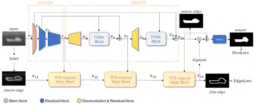 红外小目标检测(IRSTD)专门用于从模糊背景中提取小而微弱的目标,在交通管理和海上救援等场景中具有广泛的应用。由于低信噪比和低对比度,红外目标很容易淹没在具有各种噪声和杂波的背景中。如何检测红外目标的精确形状信息仍然非常具有挑战性。在本文中,我们提出了一种新颖的考虑形状的红外小目标检测网络ISNet,其中设计了受泰勒有限差分 (TFD) 启发的边缘模块和双向注意力聚合 (TOAA) 模块来解决这个问题。具体而言,受TFD启发的边缘模块聚合并增强了来自不同层次丰富的边缘信息,以提高目标与背景之间的对比度,也为提取具有数学解释的形状信息奠定了基础。TOAA 块在行和列方向上通过注意力机制计算低层信息,并将其与高层信息融合,以捕获目标的形状特征并抑制噪声。此外,我们构建了一个新的基准,由 1000 个具有各种目标形状、不同目标大小和丰富杂波背景的真实图像组成,并带有准确的像素级注释,称为 IRSTD-1k。在公共数据集和 IRSTD-1k 上的实验证明了我们的方法优于具有代表性的最先进的 IRSTD 方法。数据集和代码将会公开。