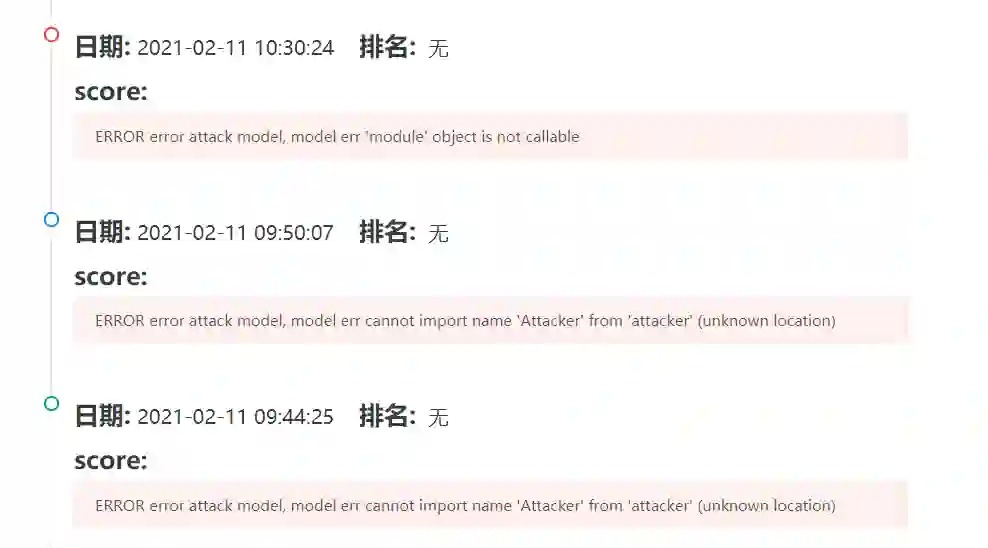 其中 是所有待攻击模型, 是评测数据集。选手需要保证攻击算法返回的对抗样本 距离原始样本 小于 ,否则平台将会自动进行clip裁剪。
