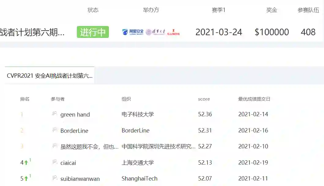 阿里安全、清华大学和UIUC共同主办CVPR2021安全AI挑战者计划第六期,打造AI安全国际赛事。共计10万美金现金奖励,召集“挑战者”以攻击者或防守者的身份共同打磨AI模型安全;为广大安全爱好者提供数字基建安全的试炼场,在高难度的真实环境中提升技术。