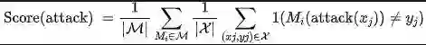 比赛主办方直接计算选手提交样本在后台模型上的攻击成功率来代表攻击性,这个值在0到1之间具体的计算公式为: