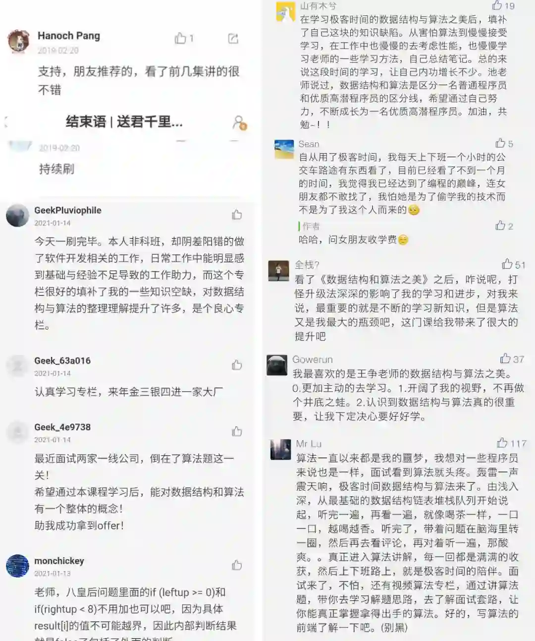 了。极客时间确实是一个有资历的老平台,毫不夸张的说,这是程序员圈里口碑最好,参与度最积极的算法课,口碑与流量双丰收。