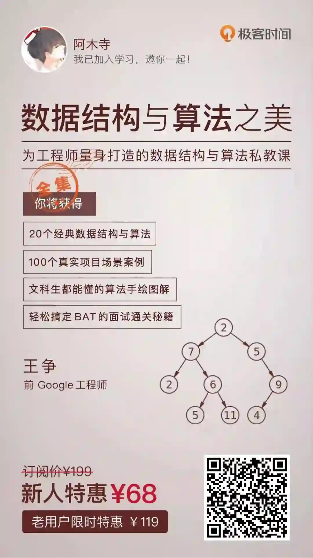 点击「阅读原文」,一顿饭钱,就能跟王争一起彻底拿下算法,值了。