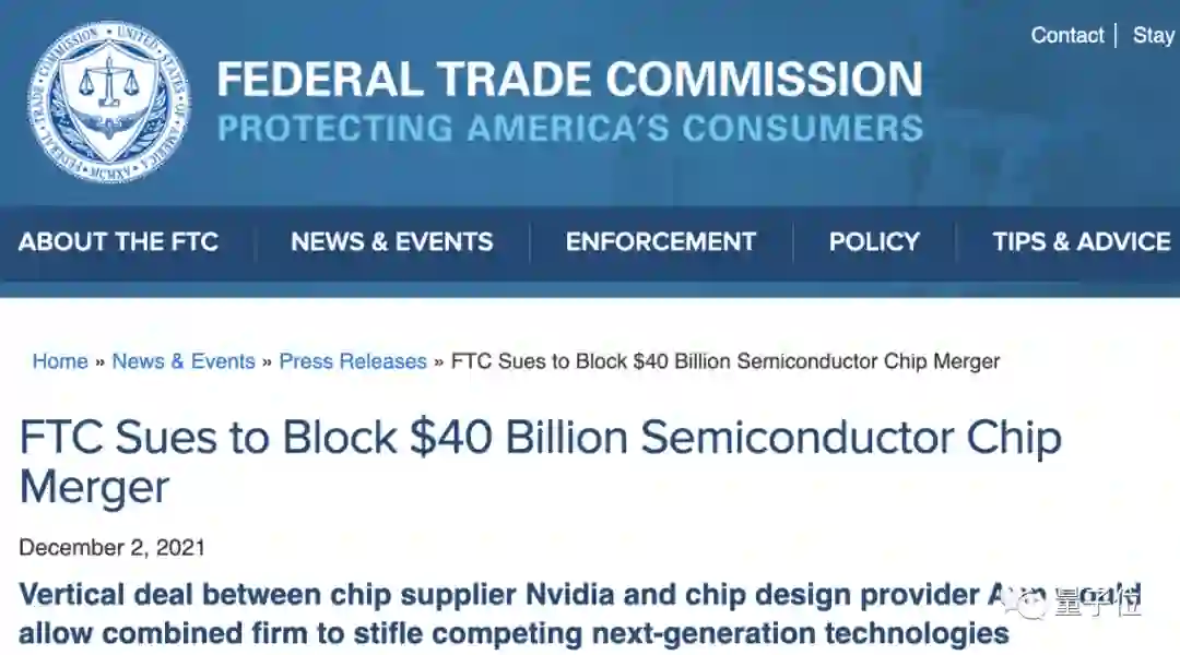 美国联邦贸易委员会(FTC)刚刚宣布,要起诉并阻止英伟达收购ARM公司。