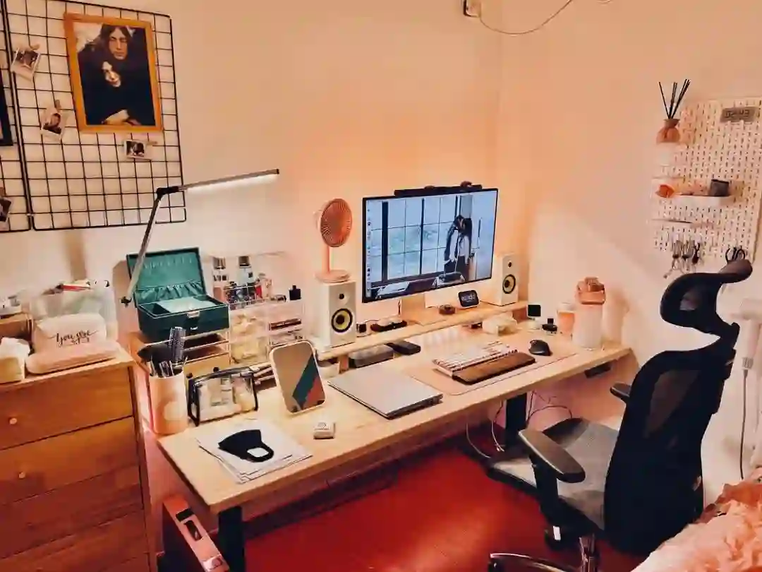 然而面对着我日益增加的桌面布置需求,它也开始力不从心。在桌面上找不到位置的新设备和散落各处的化妆品不断提醒我,断舍离总归会来。