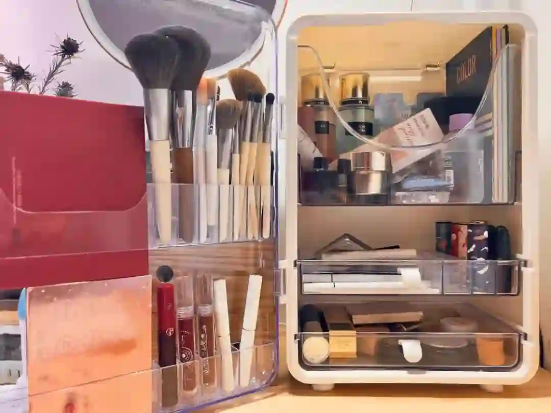 被挤到斗柜上的化妆品们,每次拿取都很不方便