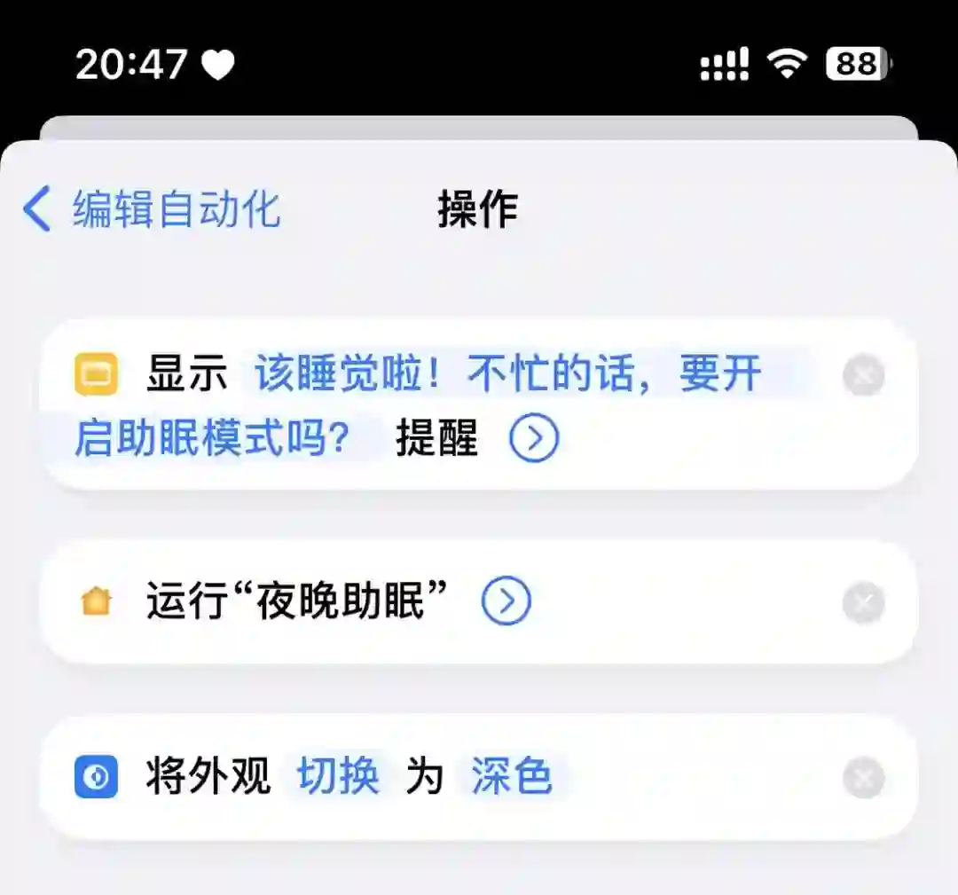不过,让所有设备都变只能的执念,不是为了让它们都能连 Wi-Fi 和 App 控制,方便躺床上的时候偷懒。智能家居与传统家居最不相同的一点是「自动化」:机器是非常单纯的东西,你告诉它做 A,它就绝对不会做 B,所以当设备满足了对于一个自动化的触发需求之后,它不会考虑你是什么情况,一定会坚决执行后续的操作。举个例子来说明,比如你设定了晚上 12 点自动开启助眠模式,关掉桌面的灯和显示器,那么一到 12 点,设备就会忠实地执行你的安排。