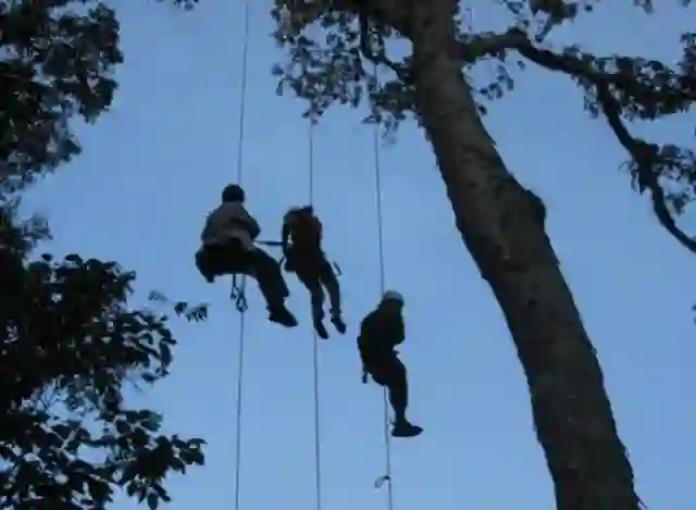 这种技术是由洞穴探险发展而来的,探险家用一根绳子进入巨大的洞穴,科学家改良了一下,用一根绳子爬到树顶上去。因为工具比较简单,单绳攀爬可以算是运用得比较广泛的爬树方法了,就是比较累人(想想就觉得累!)。