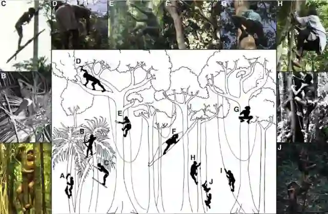 普通两脚兽是这样爬树的。图片:Kraft / Journal of Human Evolution(2014)