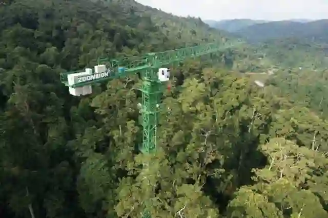 西双版纳就在2014年建成了将近90米高的林冠塔吊。你问为什么建得这么高?那是因为这里的望天树有七八十米高,总不能建得比树矮吧。塔吊的臂展有60米长,可以360°转动覆盖超过1公顷的研究区域,也就是说,在塔吊周围1公顷的森林里基本可以做到全方位无死角地研究。