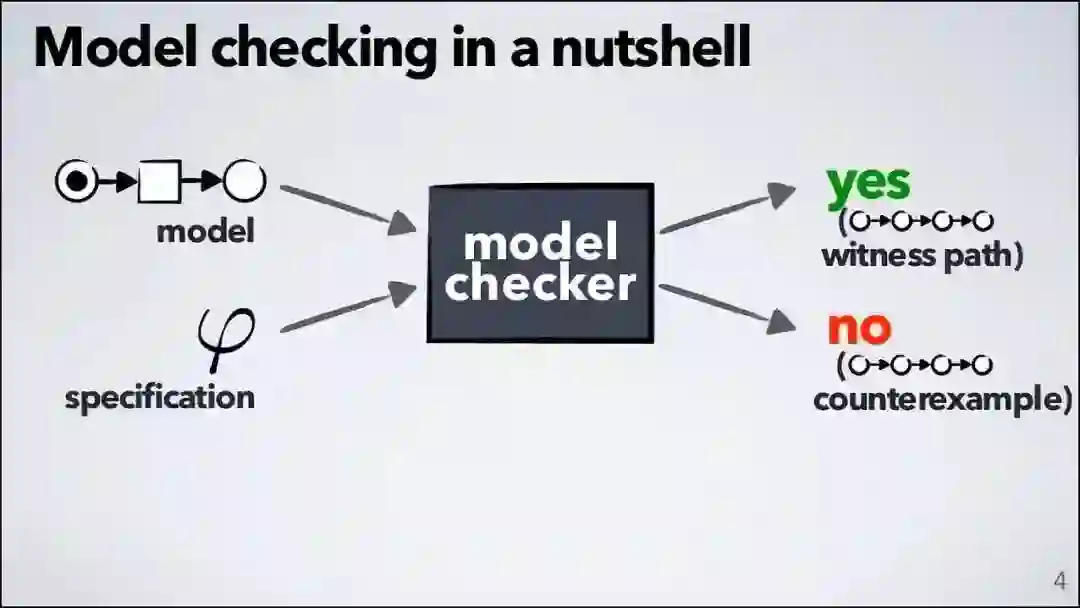 介绍模型检测要从开篇提到的形式化证明提起,因为模型检测是形式化证明中的自动化证明手段。形式化证明中的形式化简单来说就是将检测要做的具体事项用无二义性的数学语言描述,证明即基于已知条件,再依据定理推导出结论,这也就是计算机领域的公理系统。基于这套公理系统,程序员们就可借助函数命令这种软件形式化证明——定理证明来实现在军工和航空等领域的检测,但是这种类似的半自动定理证明工具依旧需要人的参与。