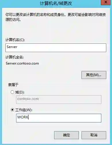 此林根域名不要与对外服务器的DNS名称相同,如对外服务的DNS URL为http://www.contoso.com,则内部的林根域名就不能是contoso.com,否则未来可能会有兼容问题。