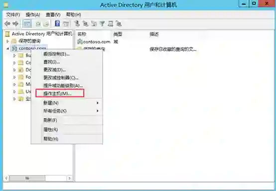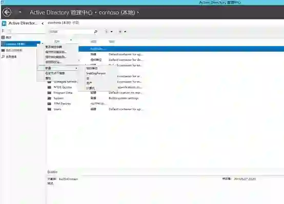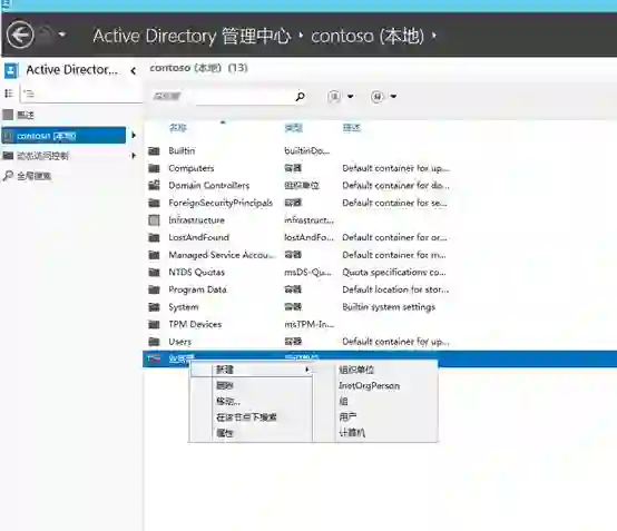 Active Directory用户和计算机-选择contoso.com右键操作主机