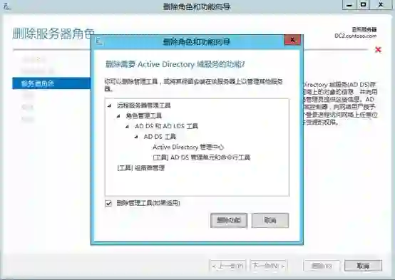 虽然这台服务器已经不再是域控了,不过此时域服务组件依然存在还是要继续去删除。