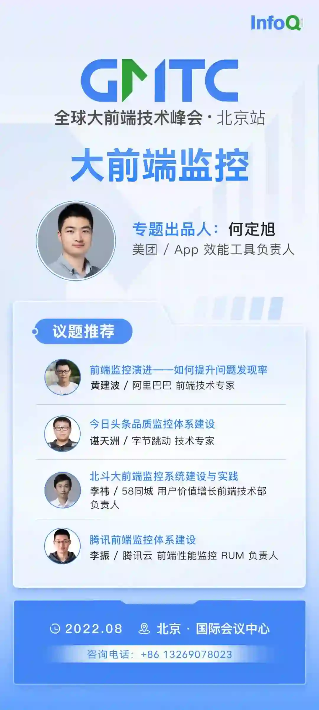 今年 8 月,我们在 GMTC 全球大前端技术大会(北京站)上策划了【大前端监控】专题,邀请了来自美团的 App 效能工具负责人何定旭老师担任专题出品人。何老师曾先后负责移动端持续集成平台、智能化发布系统与监控运维体系,目前主要致力于美团监控体系建设,为美团 200 多个业务品类提供千亿级数据实时计算、异常智能归因分析与个案日志联动查询等一条龙服务,在智能监控、用户体验与工程化等方向有较为丰富的经验。
