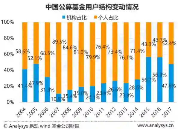 从用户结构变化的角度来看,2007年-2014年个人用户持有比例处于较高水平,但近几年,随着互联网理财渠道的发展,个人用户选择其他投资标的丰富程度和便捷性增加,总体上个人用户表现相对不稳定,波动性较大,投资理性低于机构用户。