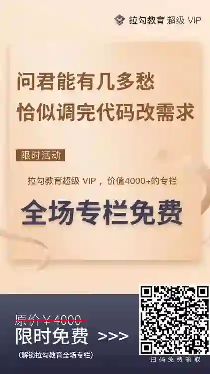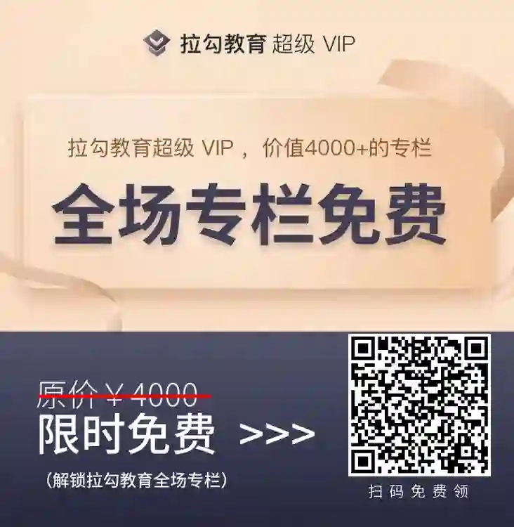 至于怎么学?关注我公众号的粉丝应该都知道,我推荐过不少拉勾教育的课程,这种学习方式我还是比较认可的,有针对性也有体系化知识,有理论有实战,高效实用。而且上新期 1 元购的活动,也很实惠。