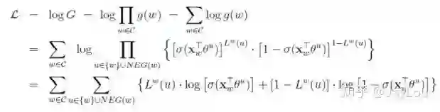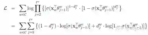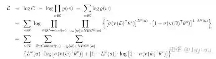CBOW中的目标函数是使条件概率 最大化,其等价于: