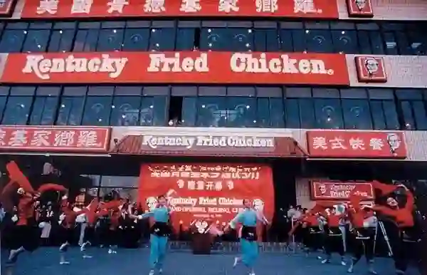 1987年, 肯德基中国第一家餐厅在北京前门正式开业,成为中国洋快餐滥觞之始。新餐饮模式开始进入中国人的视野。