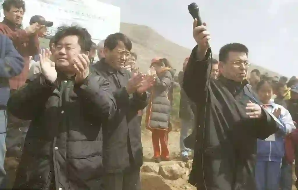 2007年3月31日,国家环保总局副局长、中国环境文化促进会长潘岳(右一)带数十名文化界名人到北京八达岭长城脚下植树,遭遇沙尘暴。经济快速发展的背后,环境问题、生态问题更为凸显。