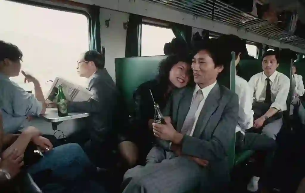 1989年,绿皮火车上一对夫妇甜蜜相依,男人西装革履手拿可口可乐,女人则烫了头穿着时髦的短裙丝袜。