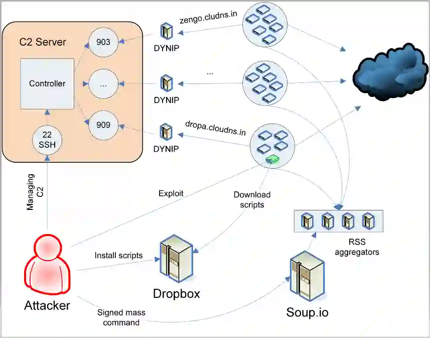 别看只利用到了一项漏洞,但 Cereals 僵尸网络本身还是相当先进的。Cereals 中包含多达四种后门机制以持续访问受感染设备,不断更新后门以防止受感染设备被其他攻击者所劫持,并通过 12 个较小规模的子网对受感染的肉鸡设备进行管理。