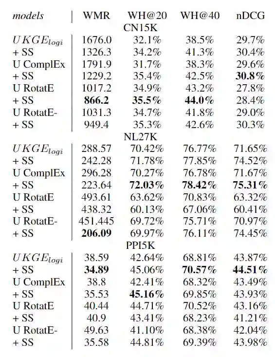 设置了两个实验任务,一个是置信度预测,给定三元组,模型对此三元组进行不确定性预测,另一个是尾实体预测,给定三元组的头实体和关系,预测尾实体,并根据置信度对候选尾实体进行排序。