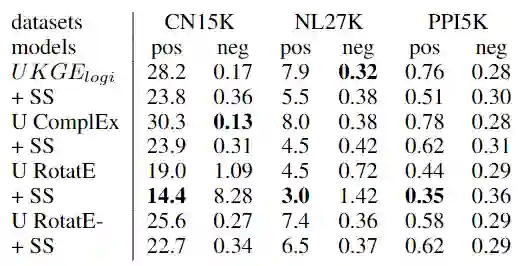 半监督样本也是通过替换训练集中三元组的头实体或者尾实体来构造,但是每个半监督样本都会计算置信度分数而不是置0。半监督样本的MSE损失如下: