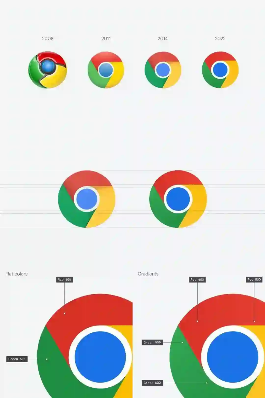 谷歌的交互设计师 Elvin Hu 近日在个人账号上公开介绍,随着 Chrome Canary 更新的到来,Chrome 的应用图标将会发生改变。新的图标去除了色块的阴影设计,将颜色提亮的同时引入了颜色渐变的过渡,比例也作出了微调优化,中间的圆圈显得更大,目的是让图标更符合谷歌现代化的设计表达。除此之外,新的 Chrome 图标在不同的系统平台上也作出了不同的适应化设计。Elvin Hu 展示了适应了 Fluent UI 的 Win 11 Chrome 图标、适配 ChromeOS 的纯色图标、还有为适配最新的 macOS 和 iOS 而在圆圈外增加阴影的图标样式。