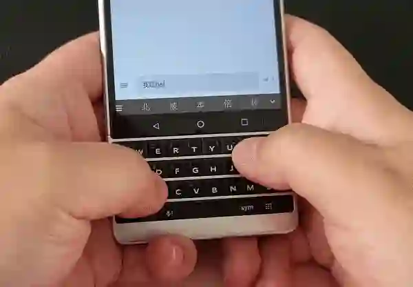 KEY2 的键盘有一个类似触控板的功能——说是触控板可能言过其实,它只是把之前那个替代万向滚轮的触控导航键做大,做到键盘上而已。但在使用黑莓自带输入法输入时,可以在键盘上通过向上滑动,把滑动位置的对应候选词上屏,这一功能被称作「飞字」。候选词可以飞,滑动可以删字,双击还能移动光标,简单习惯之后,打字能行云流水。