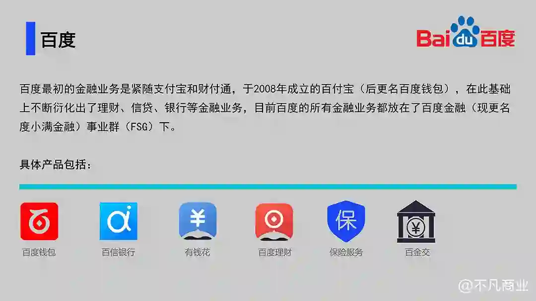 百度钱包:第三方支付业务,百度所有金融业务的起始;