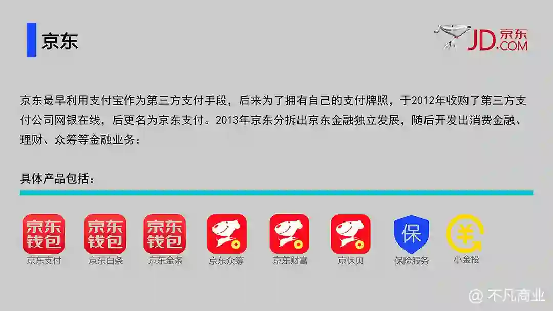 保险服务:和蚂蚁金服的保险服务相似,并投资安联财险占股30%,获得了第一张保险牌照;