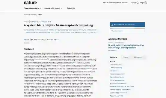被郑院士点名的这篇论文,昨天晚上也就是10月14日,被《自然》刊发。这篇题为《一种类脑计算系统层次结构》(A system hierarchy for brain-inspired computing)的论文,由清华大学计算机科学与技术系(以下简称“计算机系”)张悠慧团队、精密仪器系(以下简称“精仪系”)施路平团队与合作者共同完成,清华大学计算机系是第一完成单位。