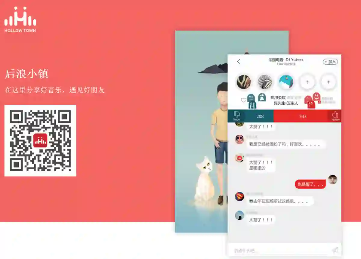 “后浪小镇”的模式与Lisn类似,用户可以在网易云音乐或虾米音乐上选择歌曲,然后分享到“后浪小镇”的群聊天室,让入群的小伙伴们一边听歌,一边聊天。