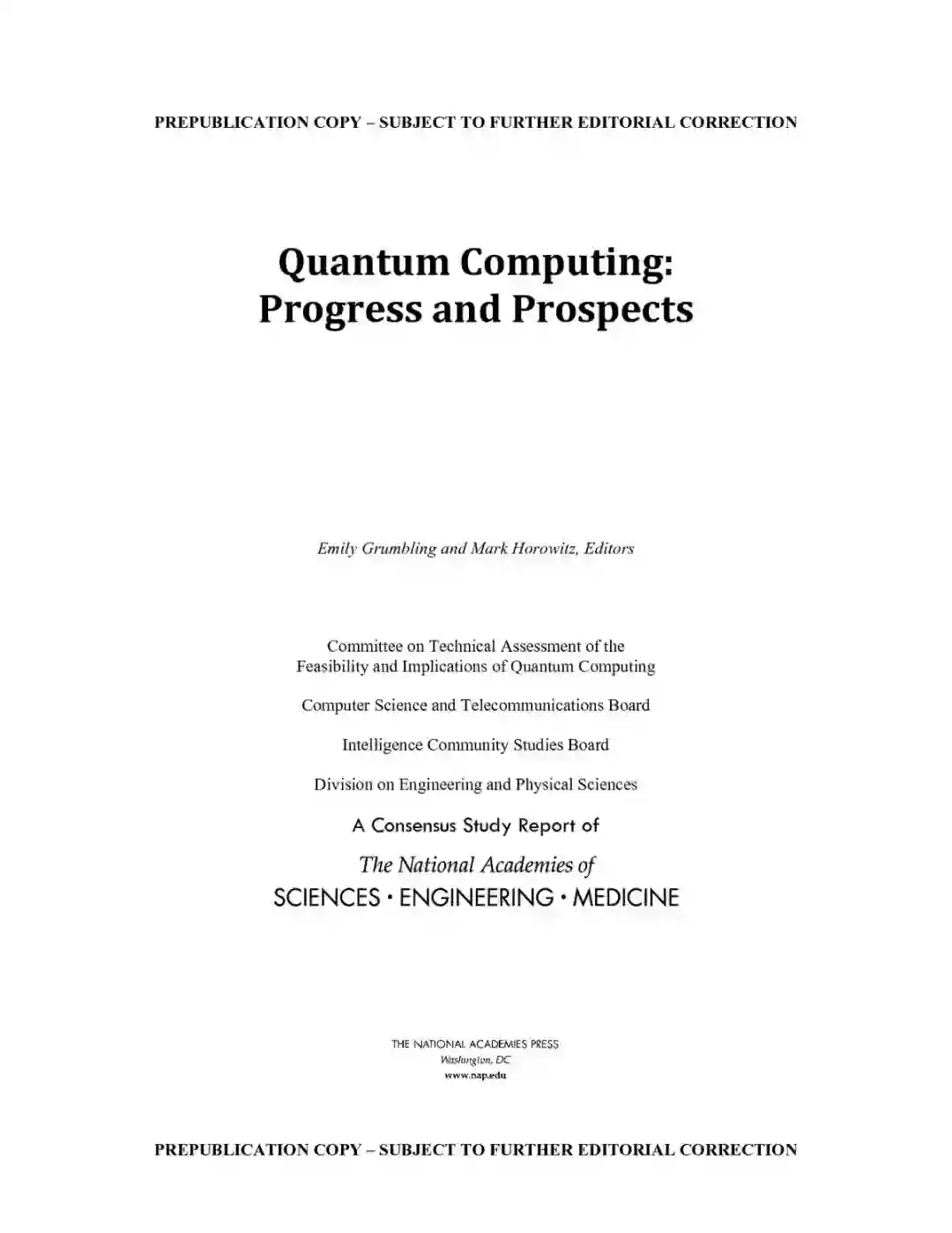 鉴于委员会可获得的信息,能够预测可扩展量子计算机的时间范围还为时尚早。
