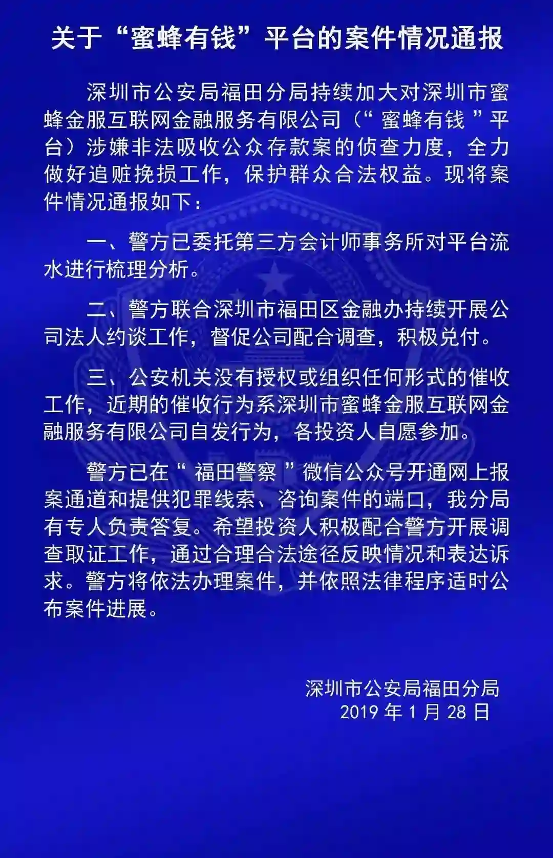 关于“蜜蜂有钱”的案情通报如下: