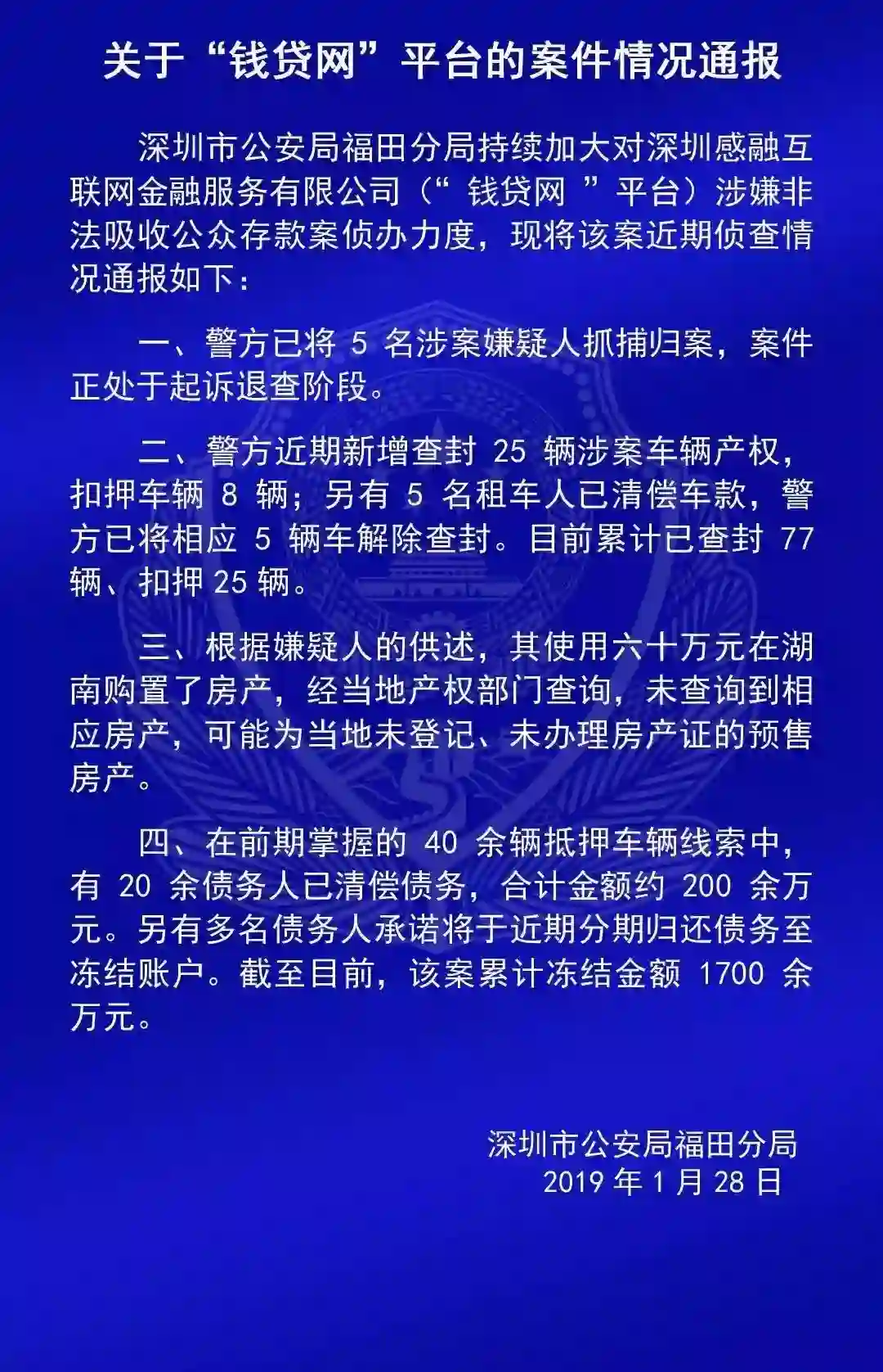 另外,关于“钱贷网”的案情通报如下:
