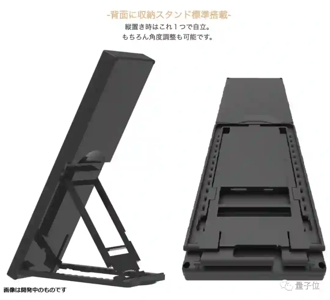 背部配有支架可以自己立住,放在桌面上不会太占面积,竖起的角度也可以调节。