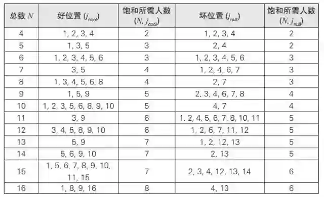 表20.1 根据便池总数不同,可算出好位置和坏位置