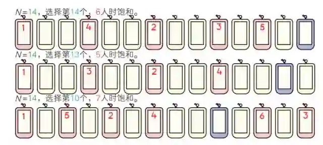 如果第一人选择最后的位置,再来5人饱和。如果他选择第10个位置,则再来6人才饱和,可记为A(14,14)=6,A(14,13)=5,A(14,10)=7。