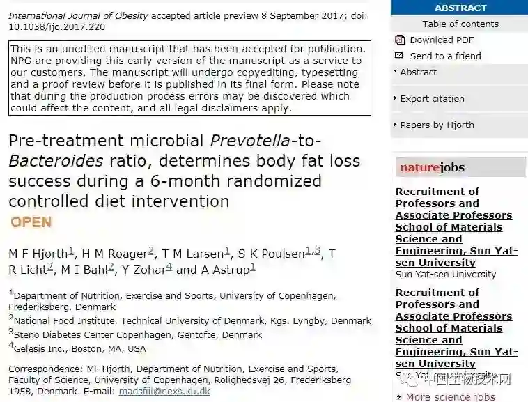 普氏菌属(Prevotella)比例高可促进减肥