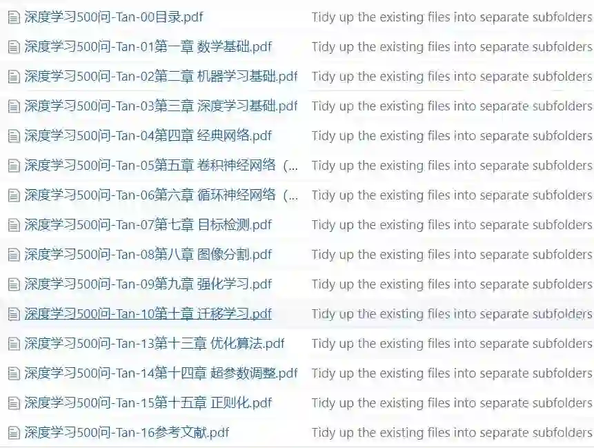 深度学习500问,以问答形式对常用的概率知识、线性代数、机器学习、深度学习、计算机视觉等热点问题进行阐述,以帮助自己及有需要的读者。 全书分为18个章节,近30万字。点击查阅详情:《川大优秀毕业生在GitHub上建了一个项目,还未完结就获赞无数》