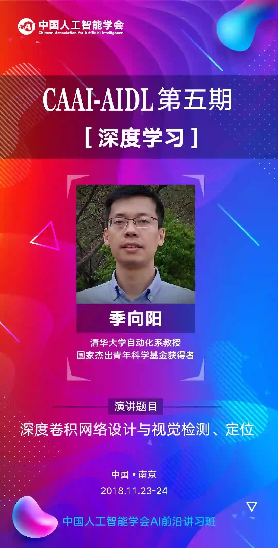 摘要:人工智能已经成为信息科学与技术、相关学术领域以及众多产业发展的新动力与新契机。报告首先从人工智能概念、历史演进以及最新的发展趋势进行介绍;随后在机器学习背景下探讨深度卷积神经网络的概念、演进、最新方法;报告将深入介绍深度卷积神经网络设计,视觉理解中物体分类、检测、分割与姿态估计的前沿方法与应用。