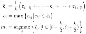 Max-Coherence Pooling. 以步长 p 在大小为 k 的窗口内将低级语义单元合并为高级语义单元,首先计算窗口内每个 local context block 的平均连贯性向量,然后取最大连贯性向量的最大维度(即概率最大的修辞关系的概率)作为该 local context 的连贯性分数,然后取窗口内连贯性分数最大的 local context 作为高级语义单元。