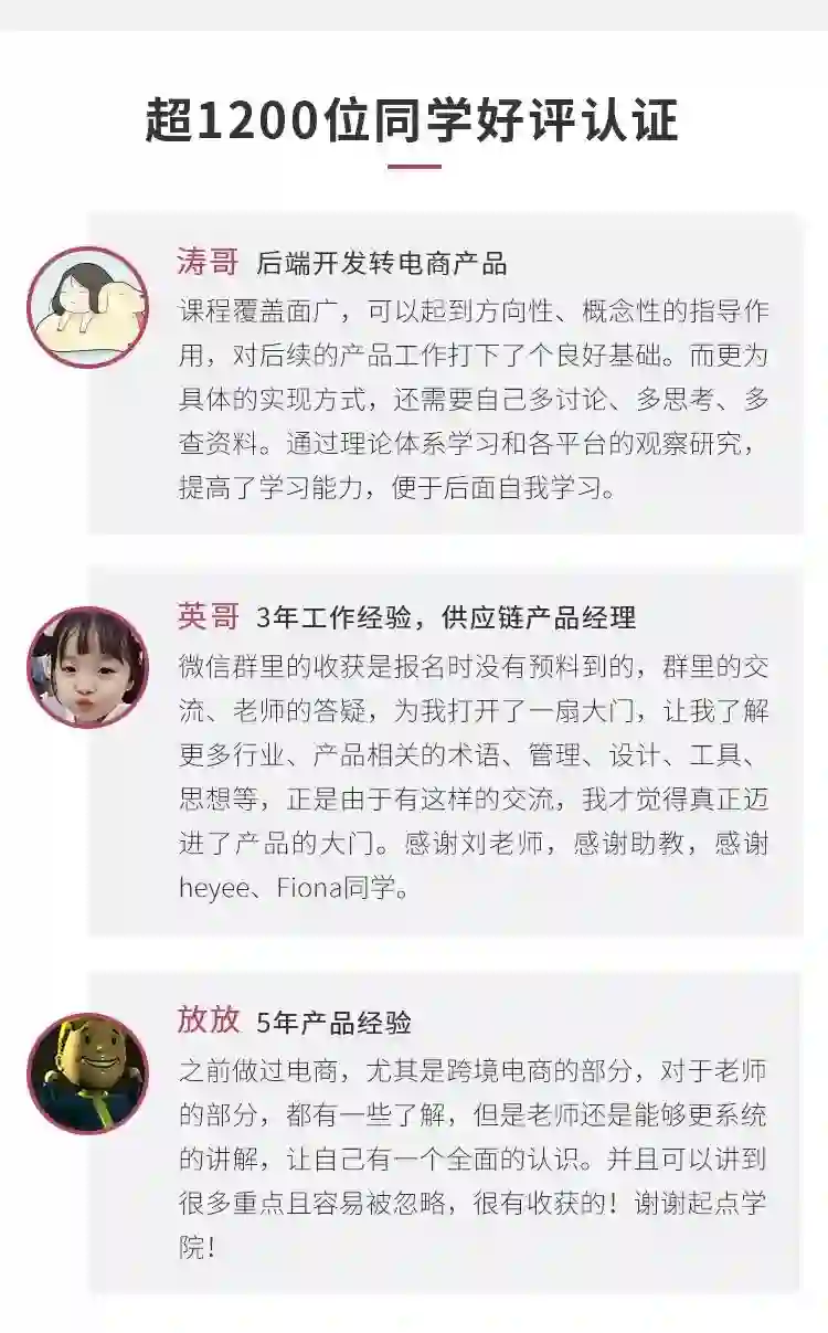 值得一提的是,这门课程的内容,不仅适合各个发展方向的电商产品经理,对非电商类后台产品设计也有不小的借鉴意义。