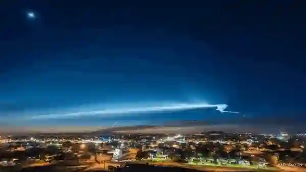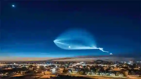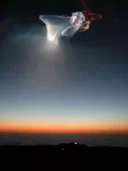 2017年12月22日,马斯克的 SpaceX 在南加州范登堡空军基地发射了猎鹰9号运载火箭(Falcon 9),火箭上运载着一些通信用的卫星。动图里的景观就是猎鹰9号引发的。
